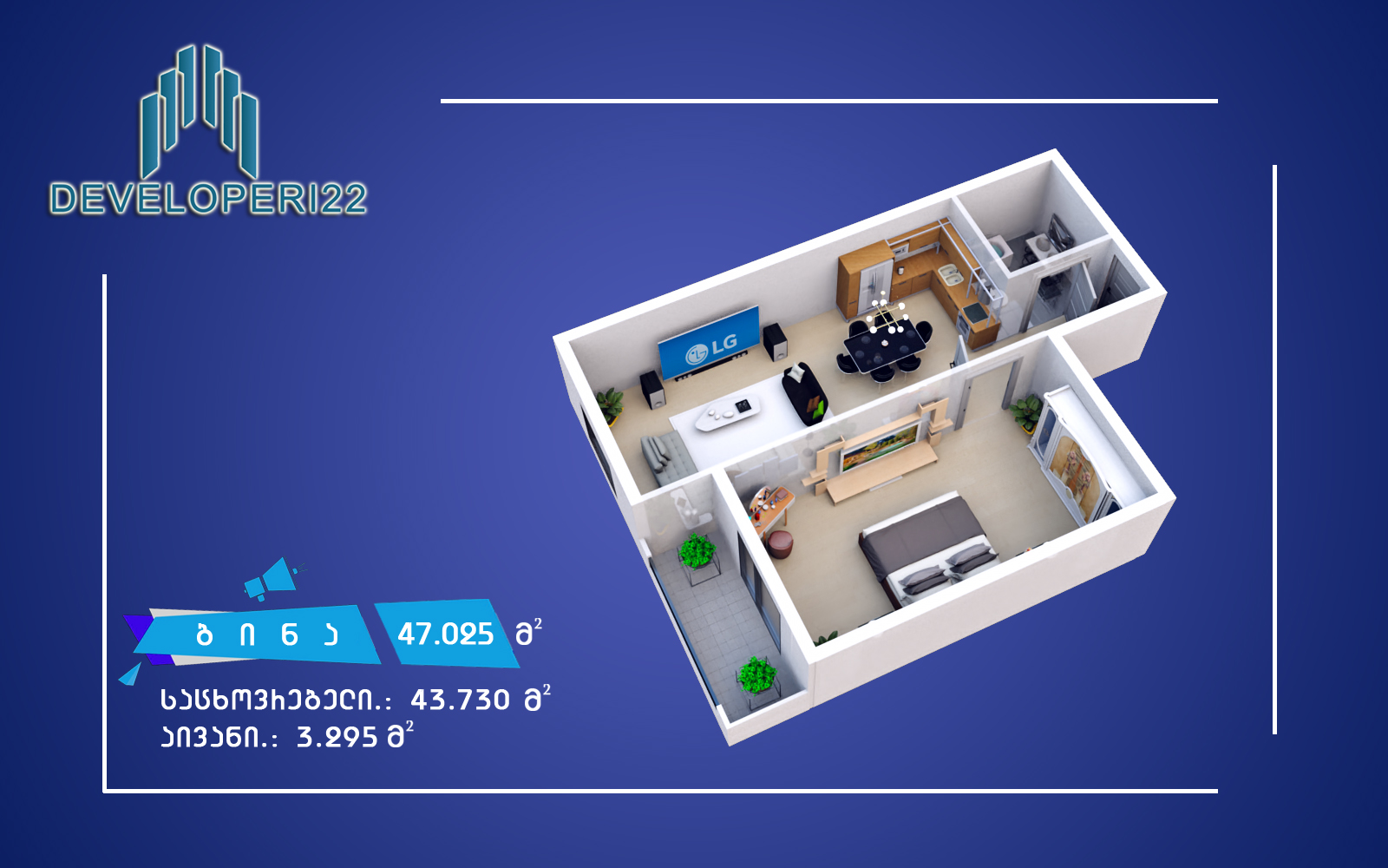 |აპარტამენტი 47.025m²